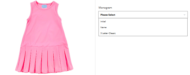 After clicking the 'MONOGRAM IT' button, a pop-up window will appear with a drop down list of Monogram styles. Note, individual products may have different monogram style options than others.